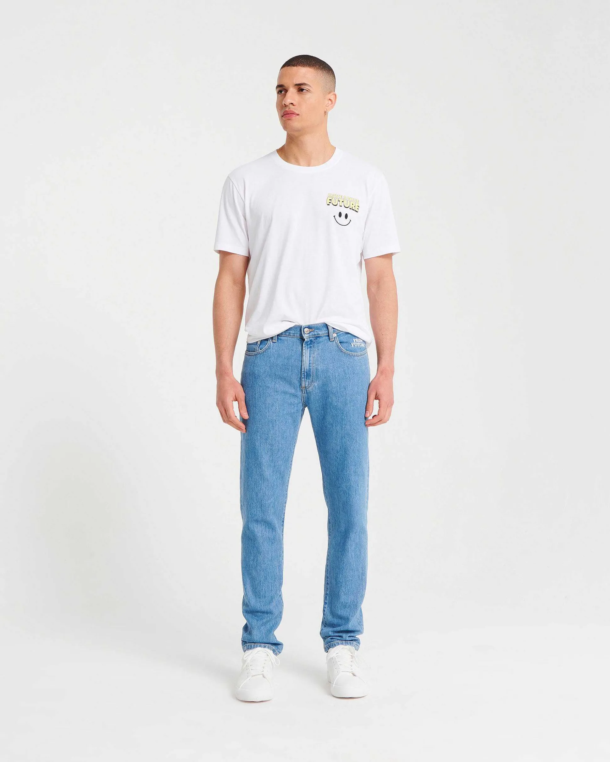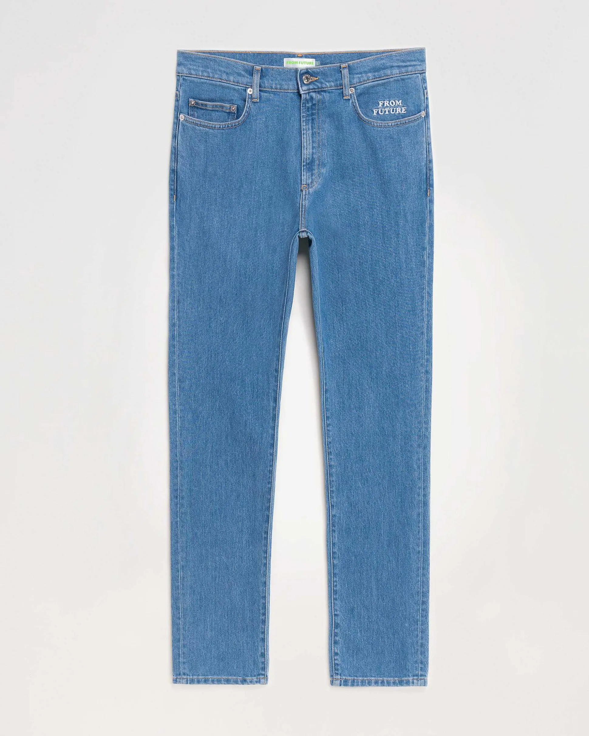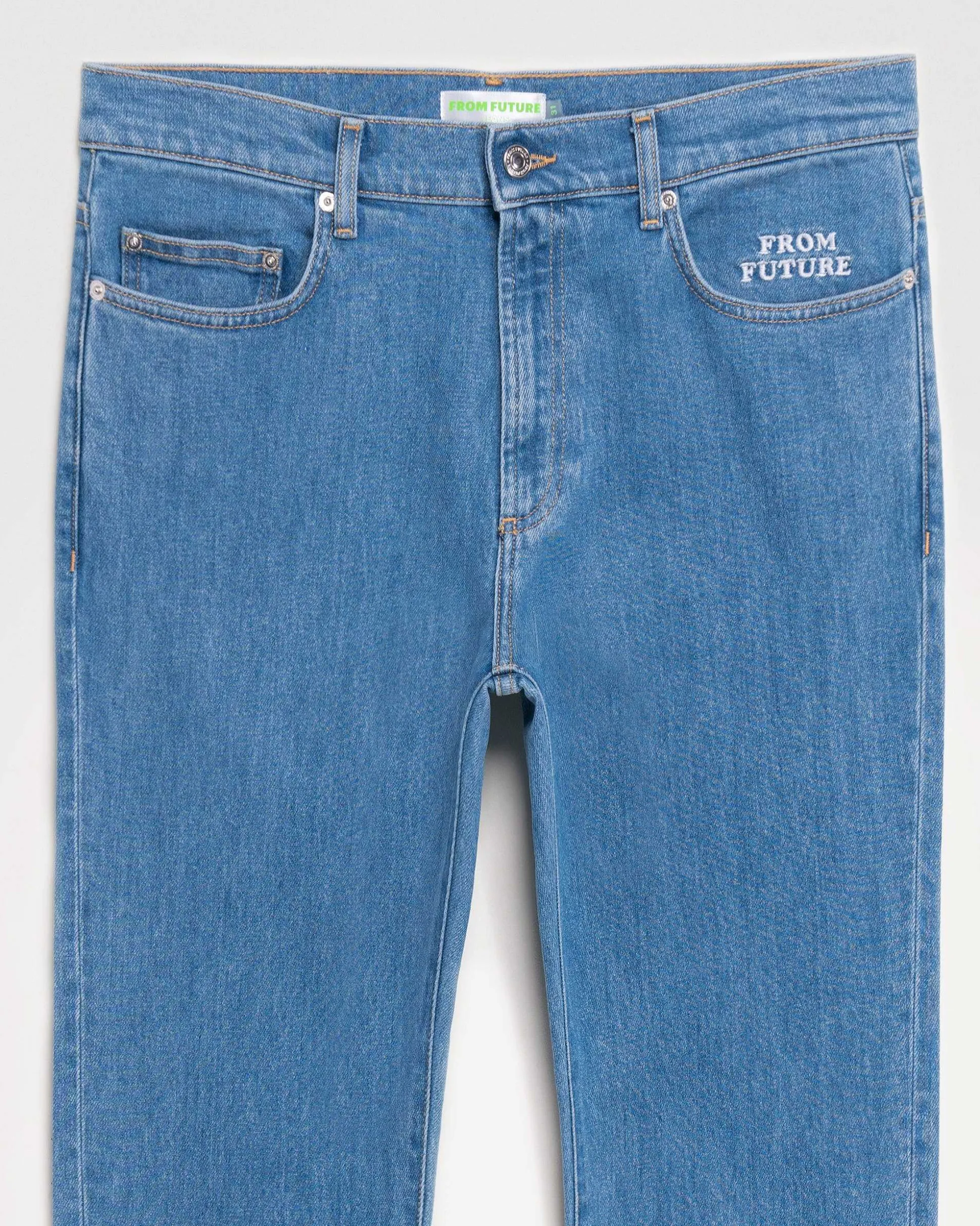 Tout Savoir Sur Jacob : Jean Slim Fit. Broderie From Future Semi-Cachée Au Niveau De La Poche Gauche. Jacron Coloré À L’Arrière. Fermeture Par Boutons Siglés Sur Le Devant.