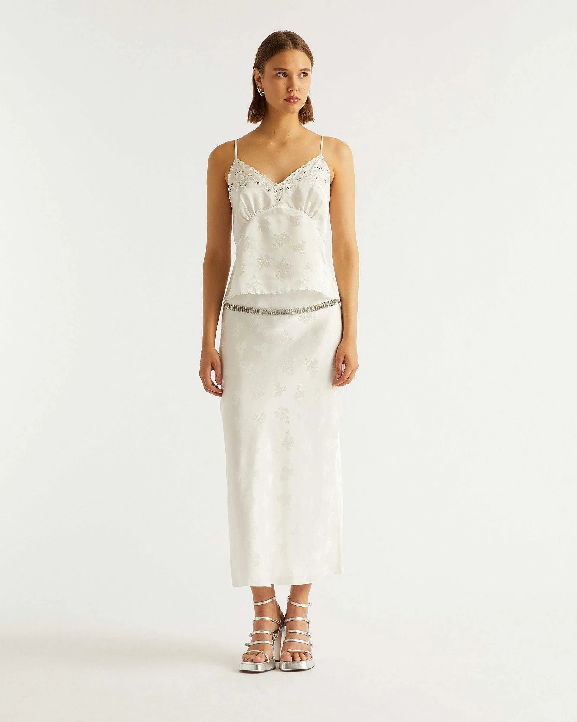 – Jupe Mi-Longue En Satin De Soie Femme