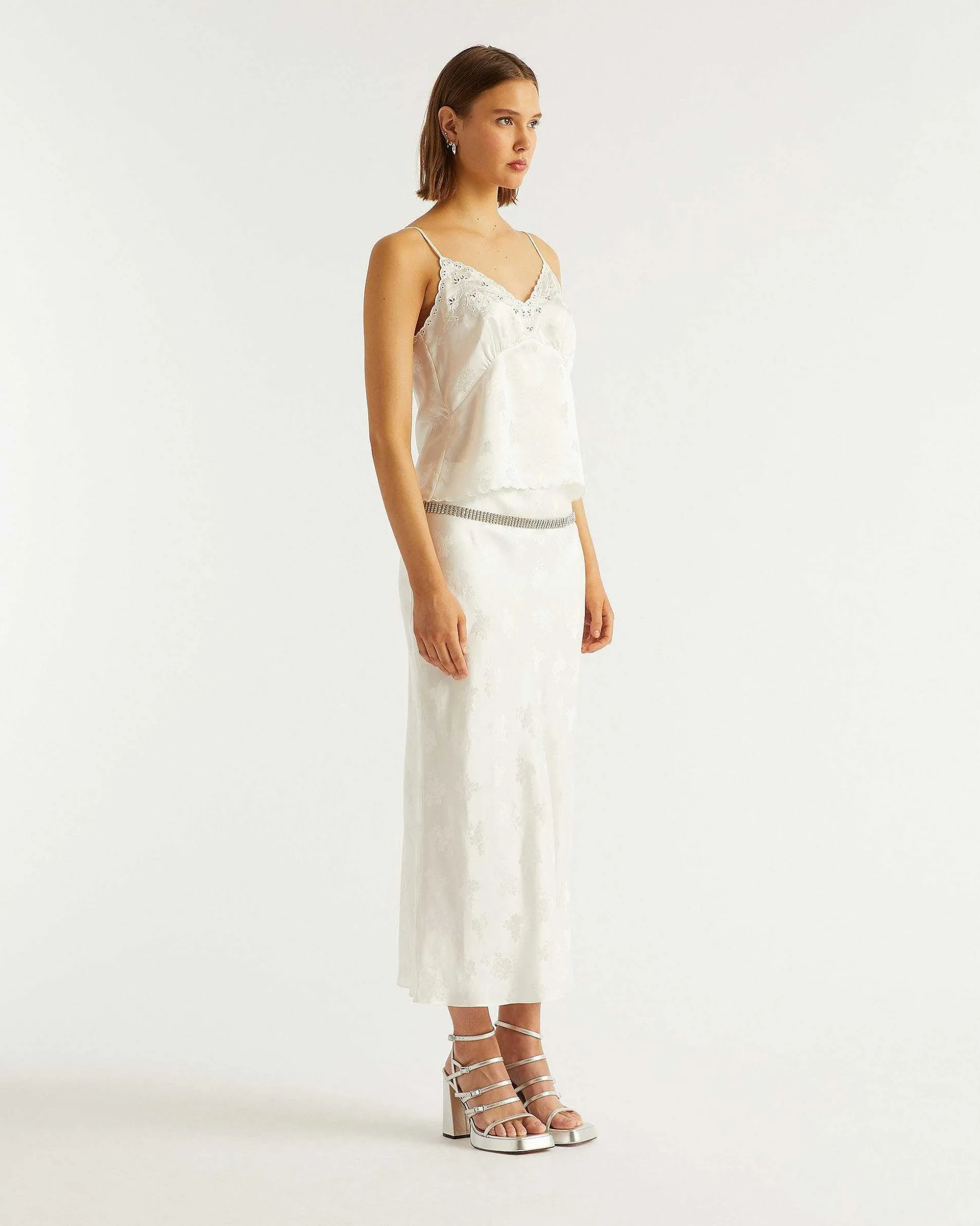Confectionnée En Satin De Soie Brillant Et Léger, La Jupe Vicky Confère Beaucoup D’Allure. Évasée Sur Le Bas, Elle Adopte Un Imprimé Aux Couleurs Vibrantes.
