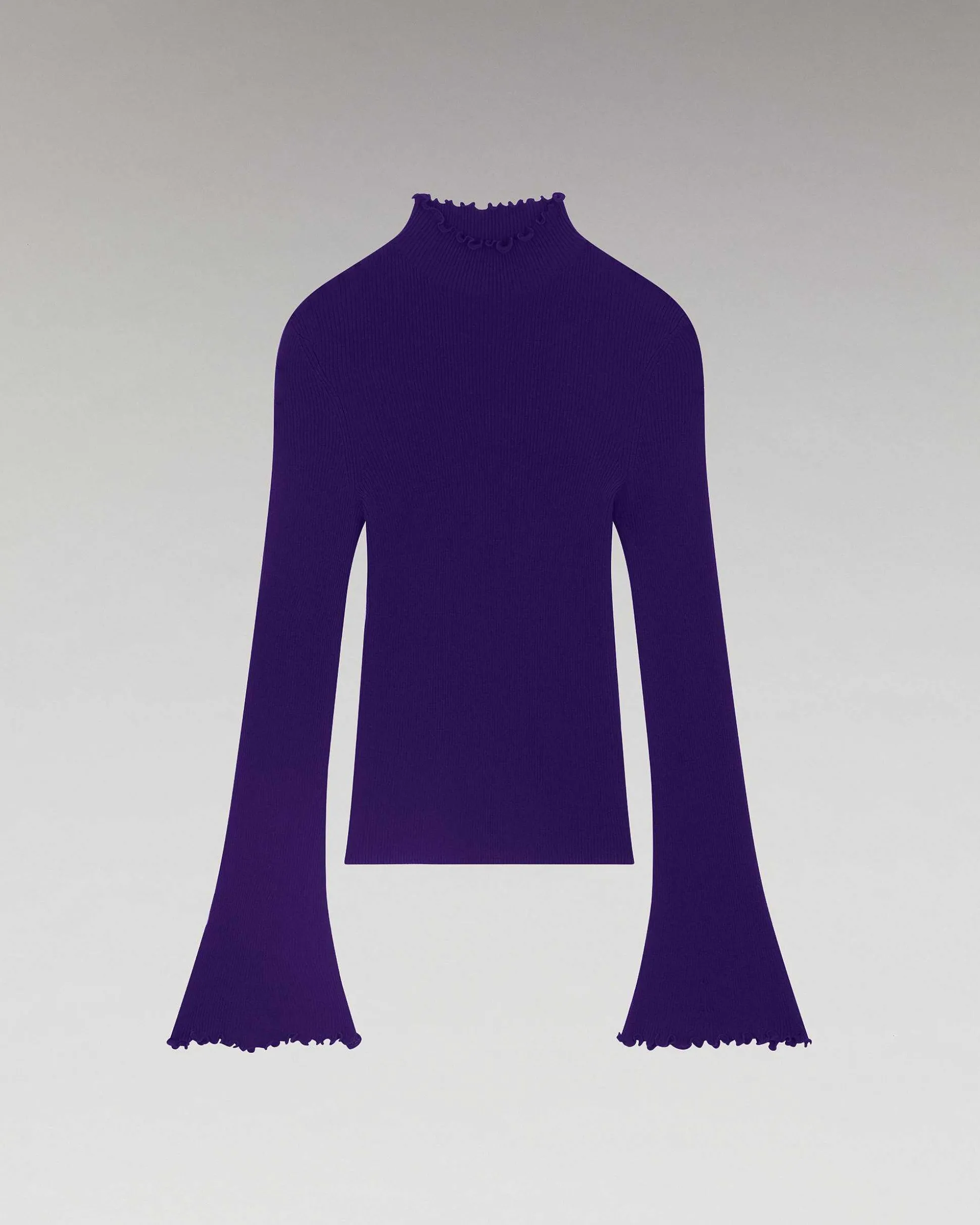 Confectionné En Laine Mérinos Extra Fine Certifiée Rws (Responsible Wool Standard), Ce Pull Côtelé Et Ajusté Se Porte Comme Une Seconde Peau. Muni D’Un Col Montant, Il Joue Avec Les Volumes Et Confère Une Allure Avant-Gardiste, Dévoilant Des Manches Longues Et Évasées. Optez Pour Un Look Chic Et Casual Et Mixez-Le À Une Jupe Fluide.
