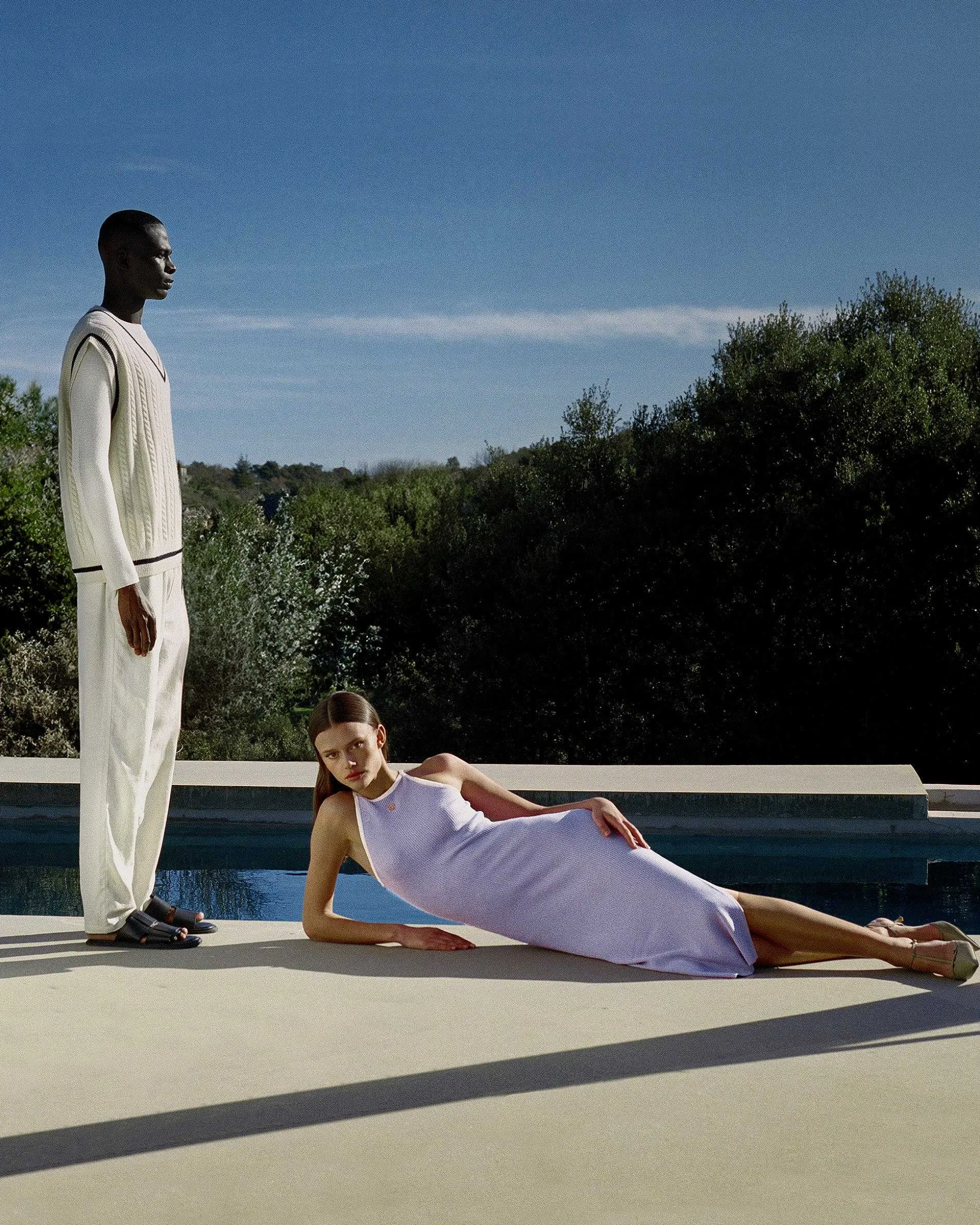 Élégance Cosmique Et Lignes Futuristes Pour Ce Pull Sans Manches Confectionné En Cachemire 4 Fils. Idéal Pour Structurer Votre Silhouette, Il Affiche Un Col Polo, Une Broderie « Future » À La Poitrine Et Des Bords Côtelés Contrastés.