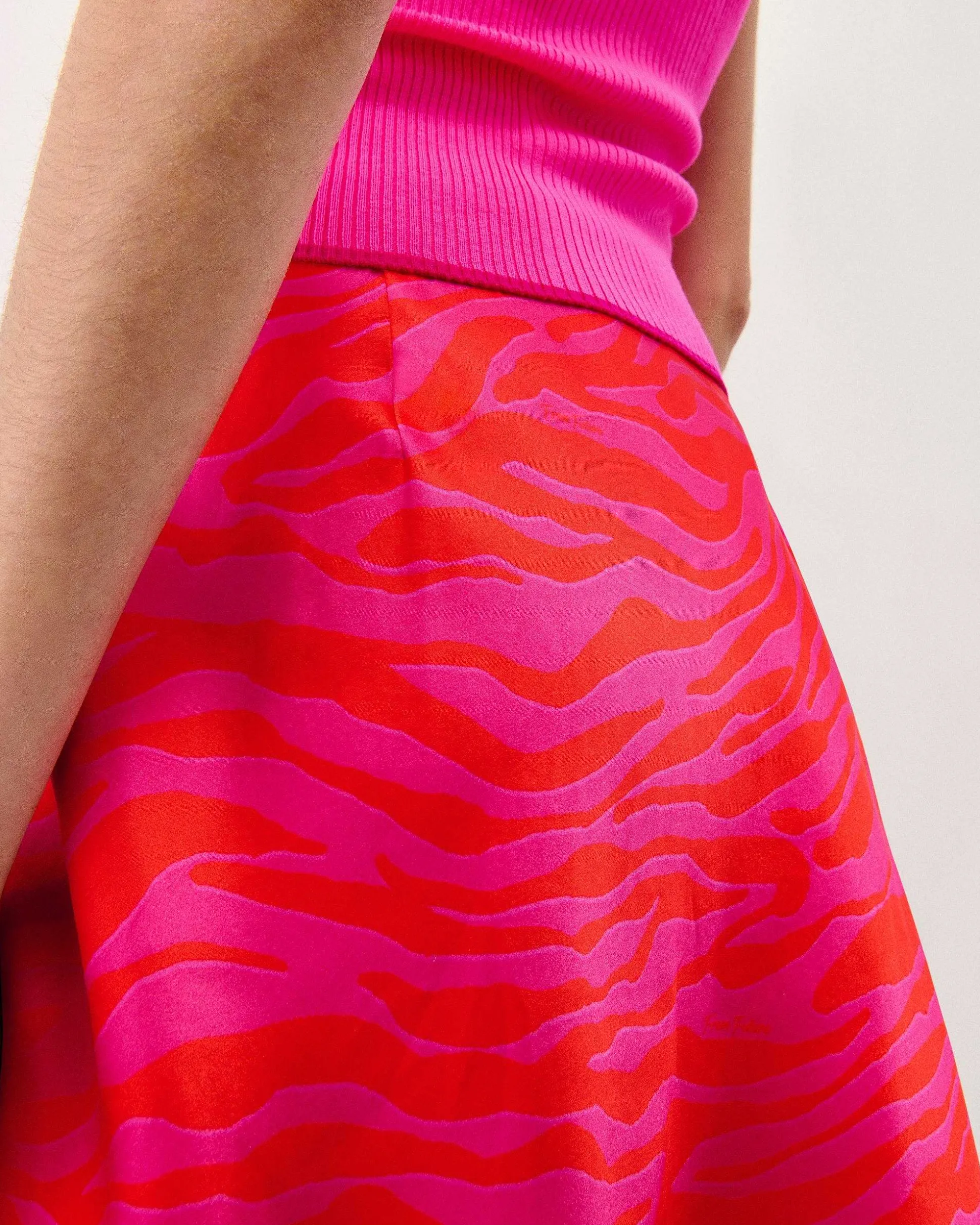 Tout En Légèreté, Cette Jupe Courte En Satin De Soie Se Pare D’Un Imprimé Graphique Pour Incarner L’Élégance Cosmique. Élastiquée À La Taille, Elle Offre Un Tombé Fluide Et Évasé. Pièce Indispensable Du Vestiaire Féminin, Elle S’Associe À Un Top Caraco Ou Une Chemise Nouée.
