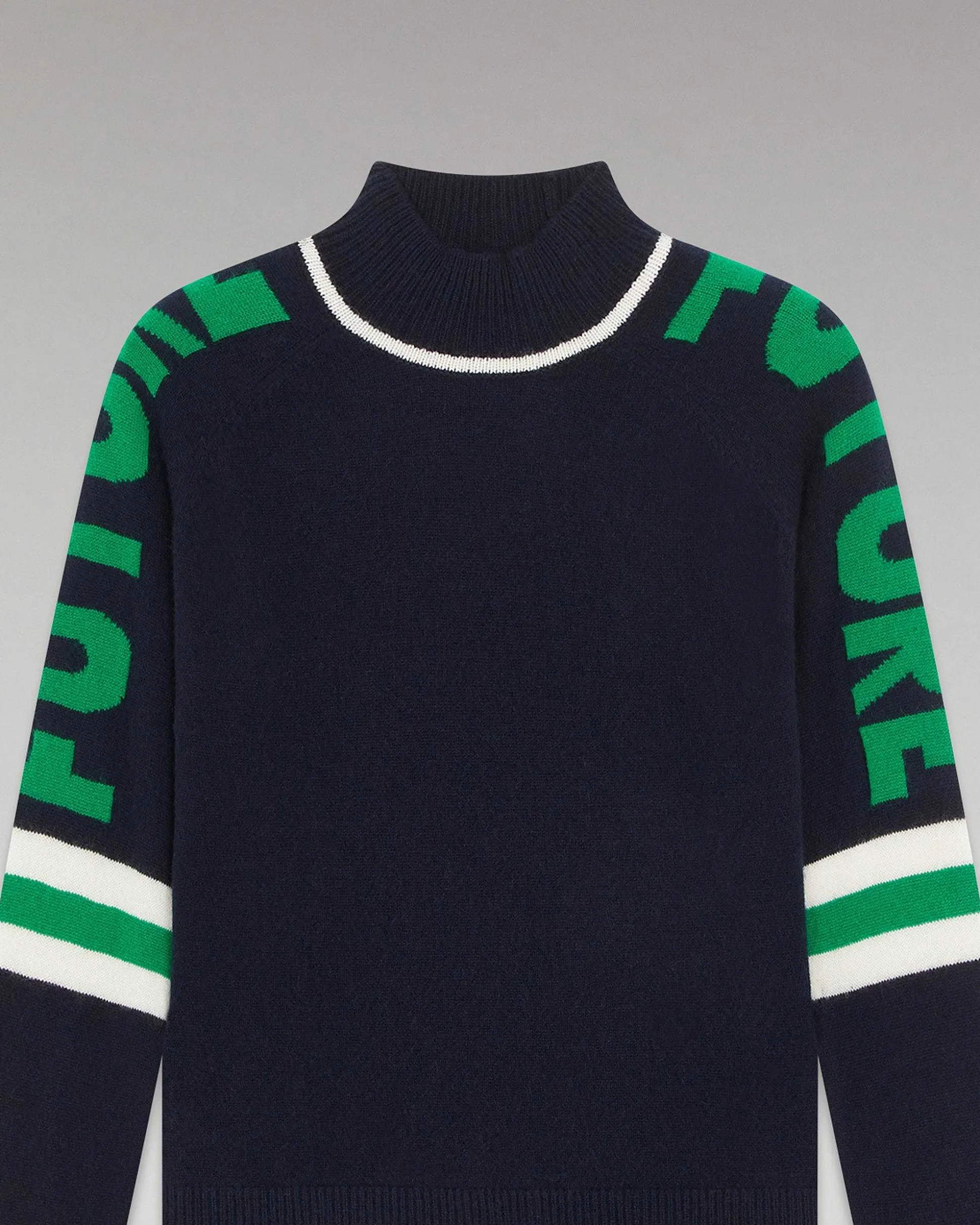 Beaucoup D’Audace Pour Ce Pull Court Et Twisté De Détails Futuristes. Confectionné En Cachemire Léger 2 Fils, Il Dévoile Un Col Montant Ponctué D’Un Liseré Contrasté. Des Bandes Bicolores Et Une Signature « Future » S’Invitent Le Long Des Manches. Résolument Élégant, Complétez Votre Look Avec Un Pantalon Ample Marqué D’Une Ceinture, Des Sneakers Et Un Bonnet.