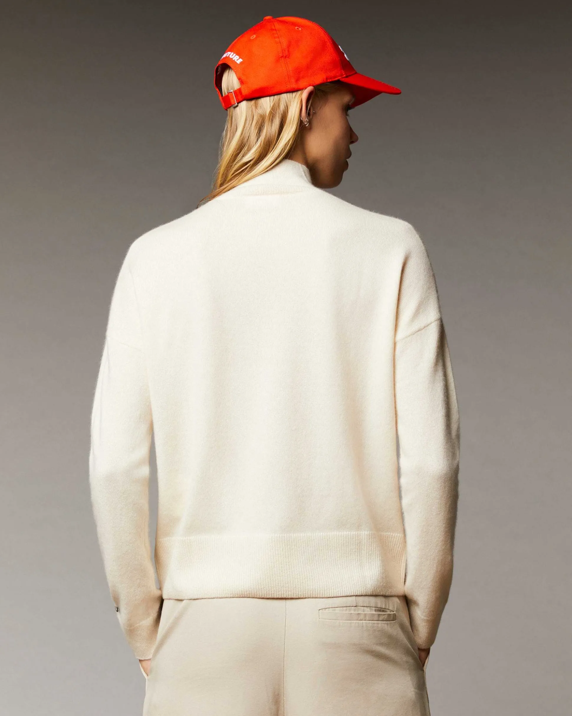 Bugs Bunny Est À L’Honneur Et S’Invite Sur Ce Pull Oversize Aux Couleurs Vibrantes. Confectionné En Cachemire 2 Fils, Il Est Muni D’Un Col Montant, De Manches Longues Et De Bords Côtelés. Insufflant Un Esprit Ludique Et Une Touche De Nostalgie, Il Dévoile L’Emblématique Slogan « That’S All Folks! » Signé Looney Tunes Et Une Broderie Signature « From Future » Sur Le Poignet Gauche.