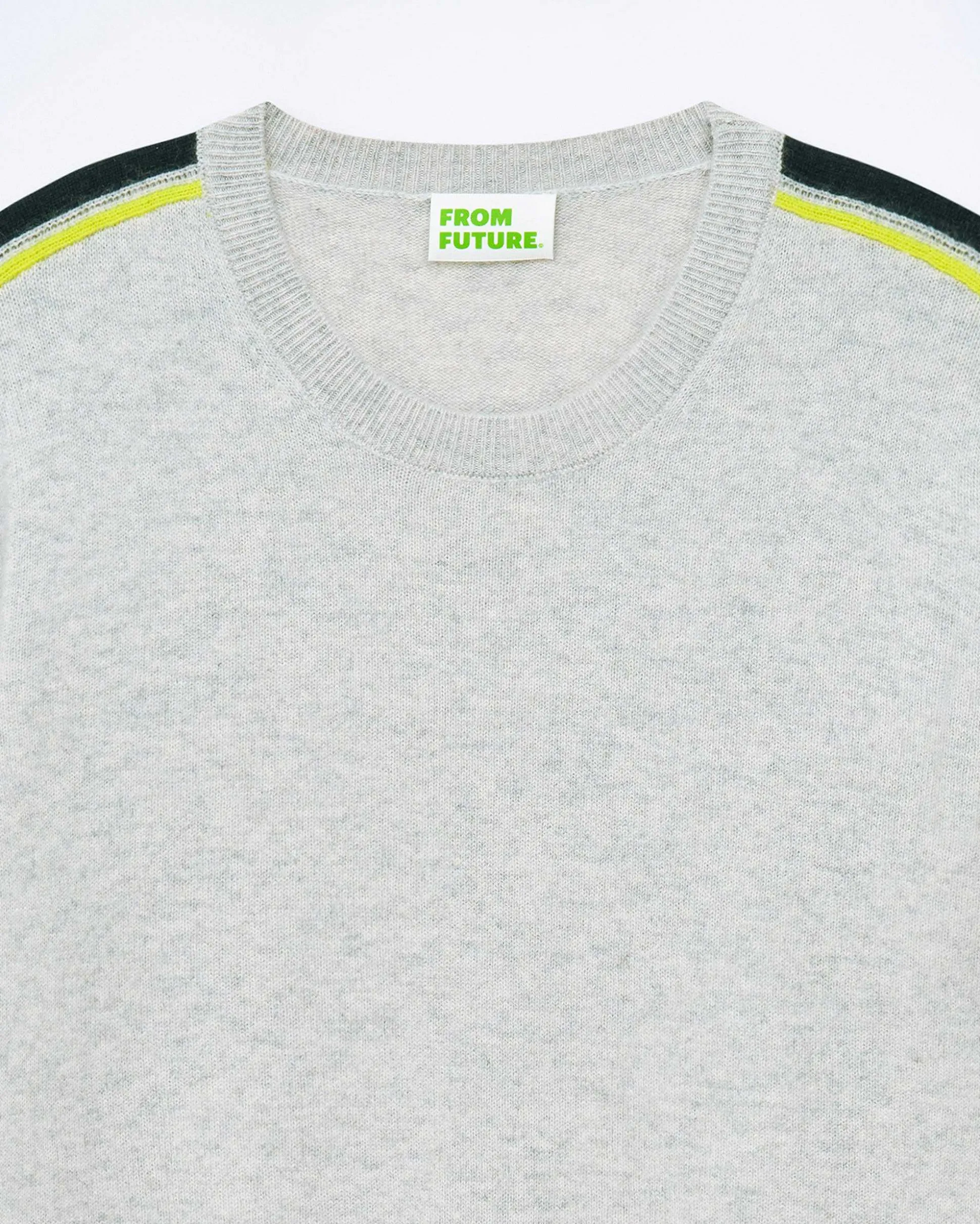 Complétez Votre Silhouette Futuriste Avec Ce Pull Confectionné En Cachemire 2 Fils. Muni D’Un Col Rond Et De Bords Côtelés, Il Offre Un Jeu De Contrastes Et Arbore Des Bandes Bicolores Le Long Des Manches. Avec Son Allure À La Fois Affirmée Et Décontractée, Il S’Associe Aisément À Un Jean Casual Ou Un Jogging Droit.
