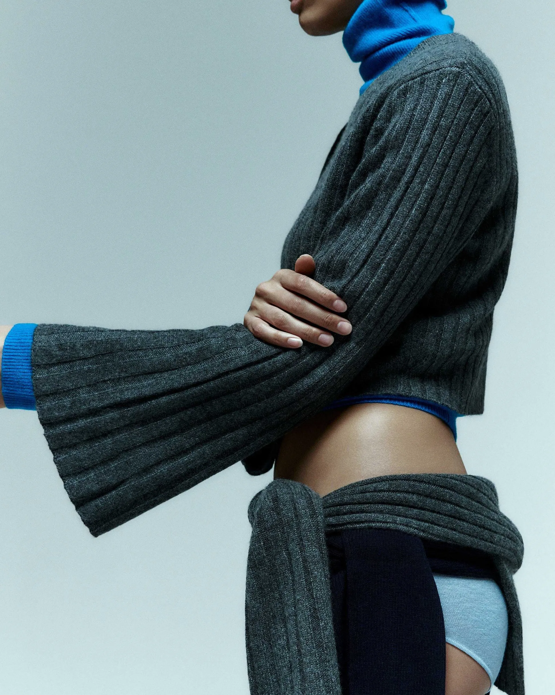 Coupe Audacieuse Et Lignes Futuristes Pour Ce Pull Court Confectionné En Cachemire 4 Fils. Délicatement Côtelé, Il Joue Avec Les Volumes Et Dévoile Un Col Rond Et Des Manches Longues Évasées. Idéal Pour Structurer Votre Silhouette, Mixez-Le À Un Pantalon Ample Marqué D’Une Ceinture Et Une Paire D’Escarpins.