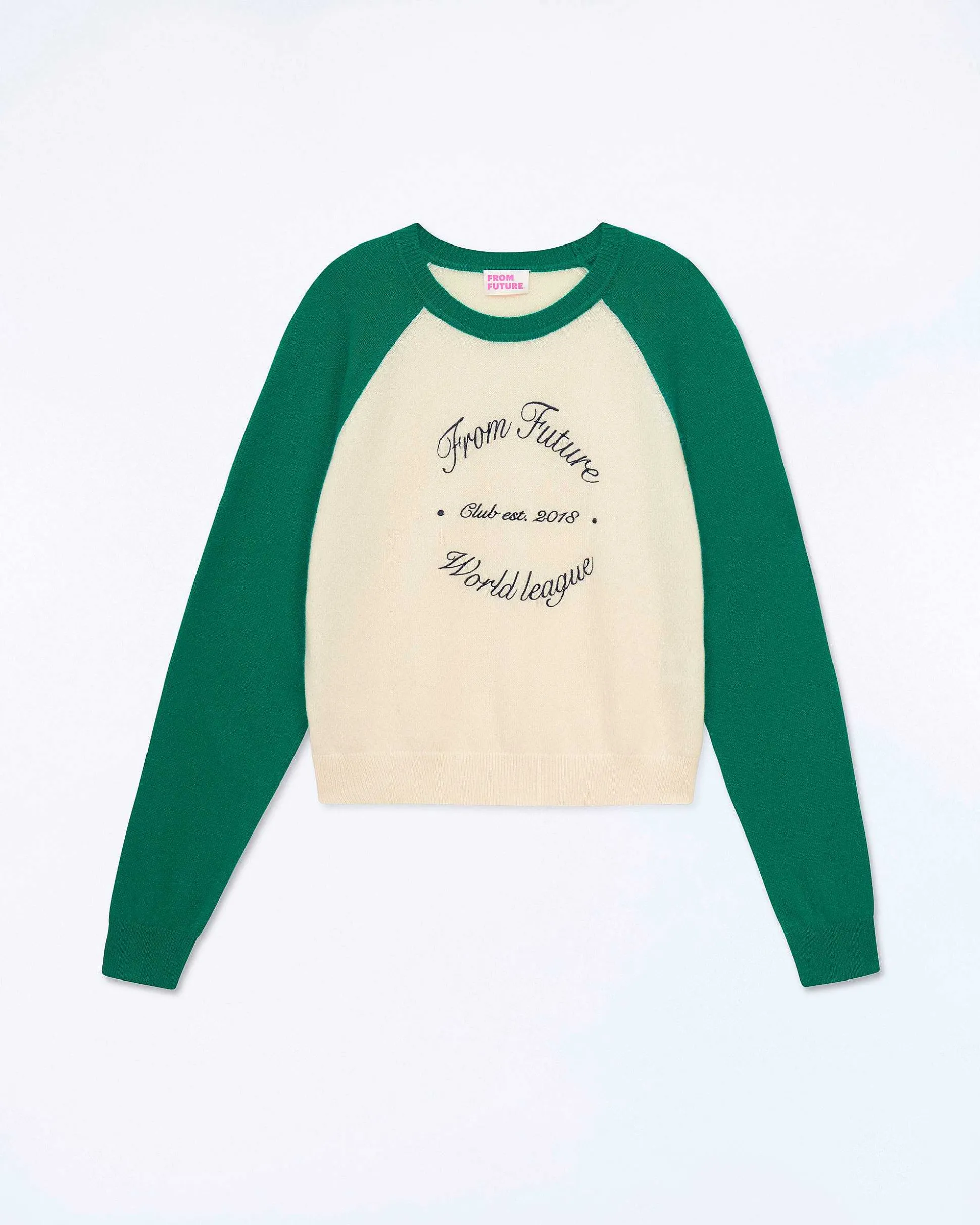 Inspiré Du Style Collège, Ce Pull Court Vous Invite À Rejoindre Le Future Club. Confectionné En Cachemire Et Orné D’Un Jeu De Contraste Bicolore, Il Arbore Fièrement Une Broderie « From Future World League » À L’Avant, Le Détail Chic Pour Réhausser Votre Allure. Muni D’Un Col Rond, De Manches Longues Et De Bords Côtelés, Il S’Adopte Sans Effort Et Se Mixe Aisément À Un Jean Casual.